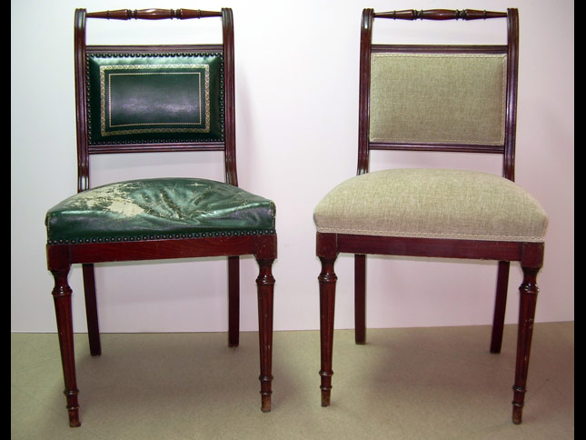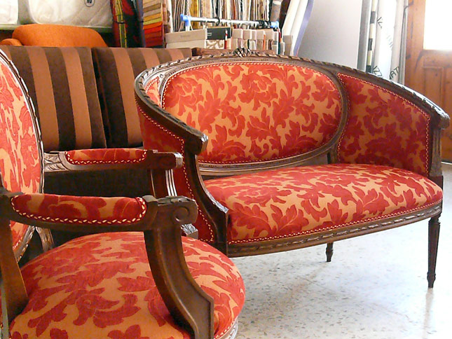 Restauración de piezas antiguas con la mayor delicadeza y los materiales más adecuados a cada modelo y estilo; muelles helicoidales, crin animal y vegetal, burletes cosidos a mano, tachuelas.